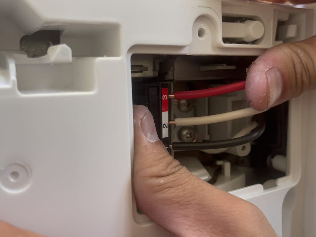 電線とアース線を室内機につけ、