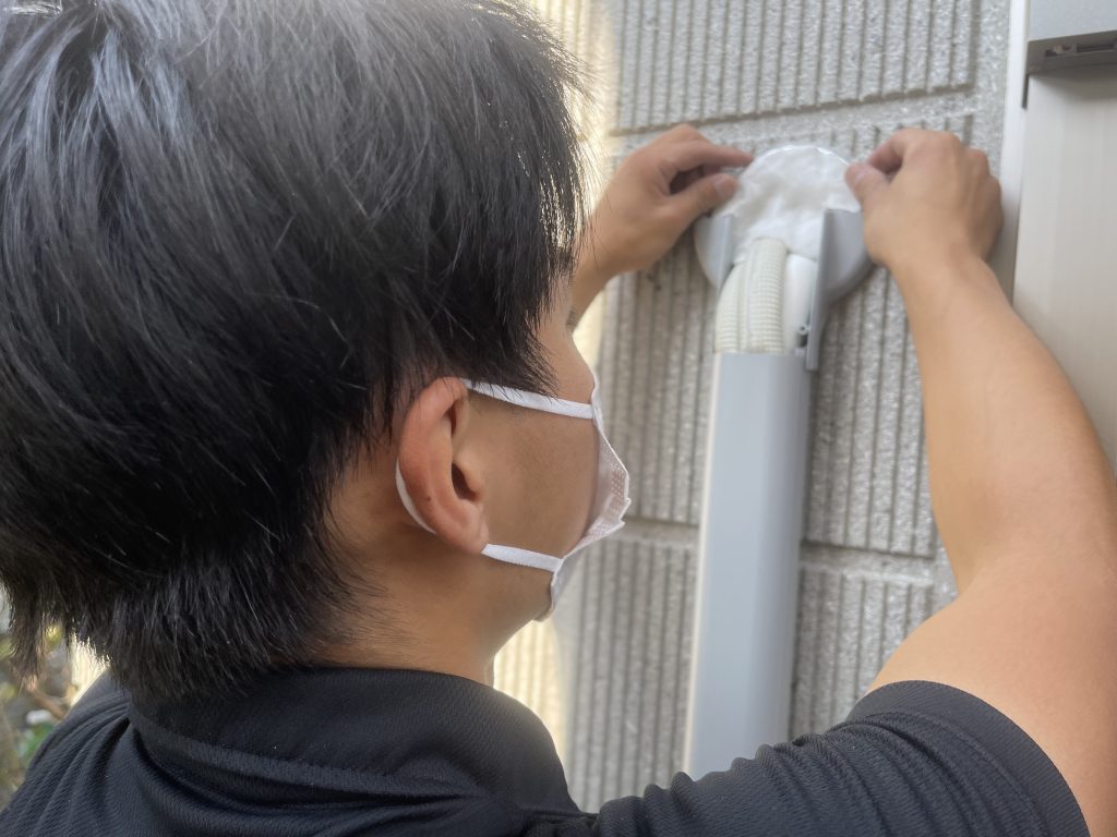 パテ埋めをすることで、配管穴からの雨風・害虫の侵入を防ぎます。