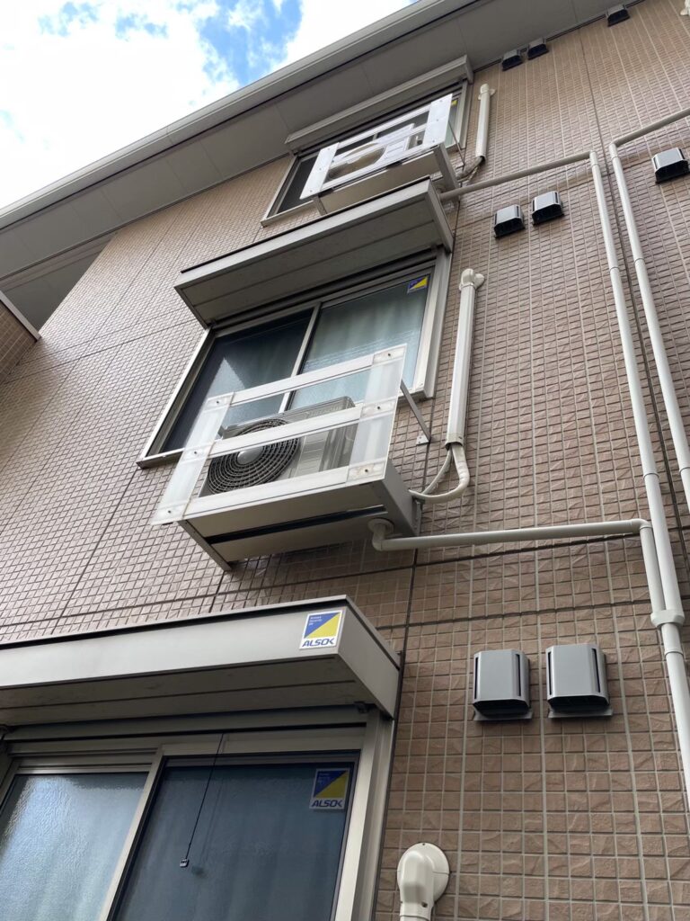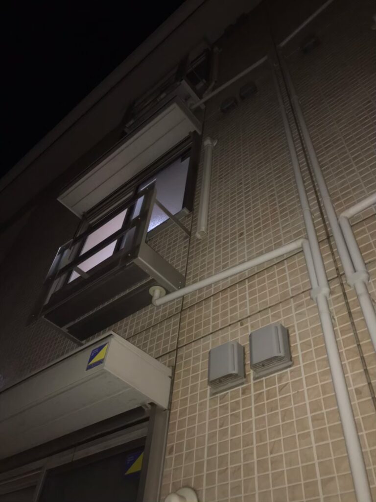 室内機と室外機は異なる階ではなかったですが、ベランダに足を踏み入れる